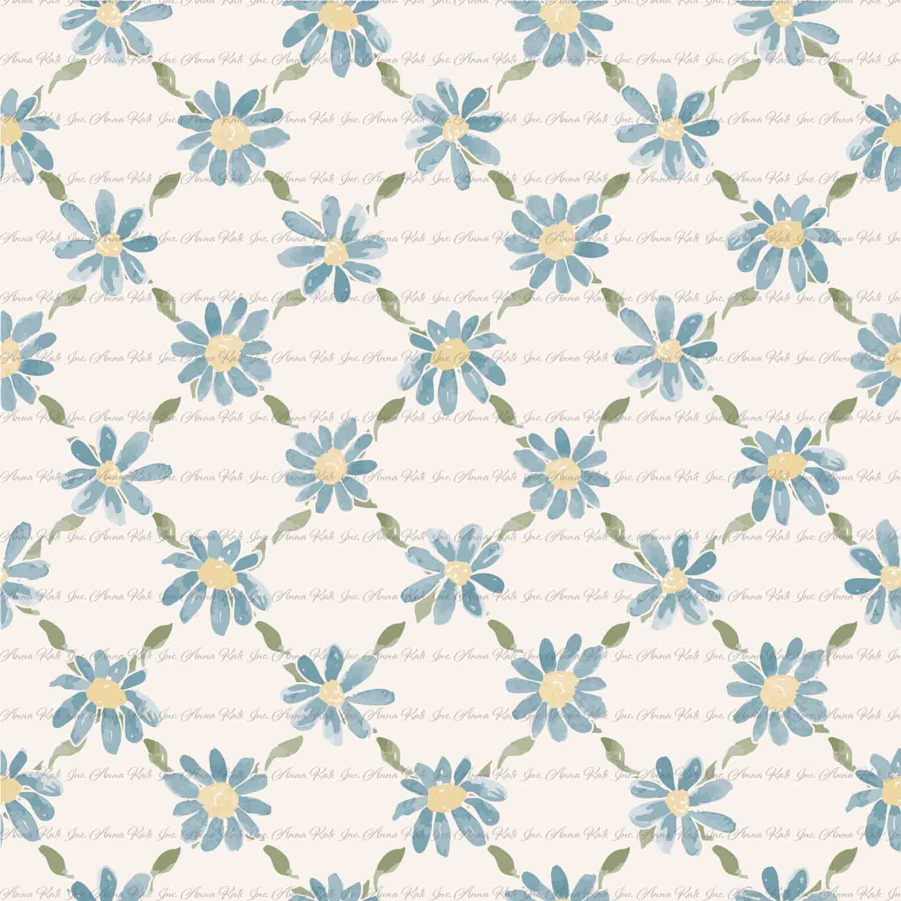 Garden's Joy: Grid Floral in Blue | Chickadee Unbrushed Rib Knit Fabric