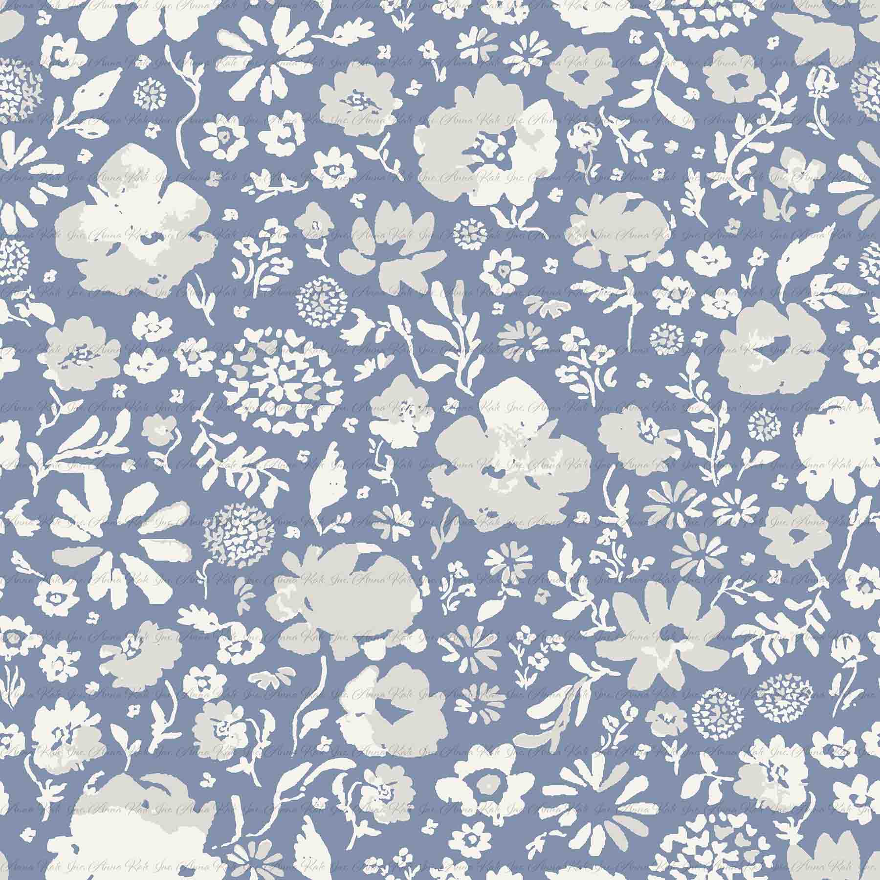 Spring Serenade: Laura Floral in Blue | Chickadee Unbrushed Rib Knit Fabric
